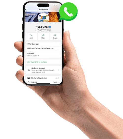 Akun bisnis menampilkan nama brand Anda secara resmi—bukan hanya nomor—sehingga lebih profesional dan mudah dikenali.