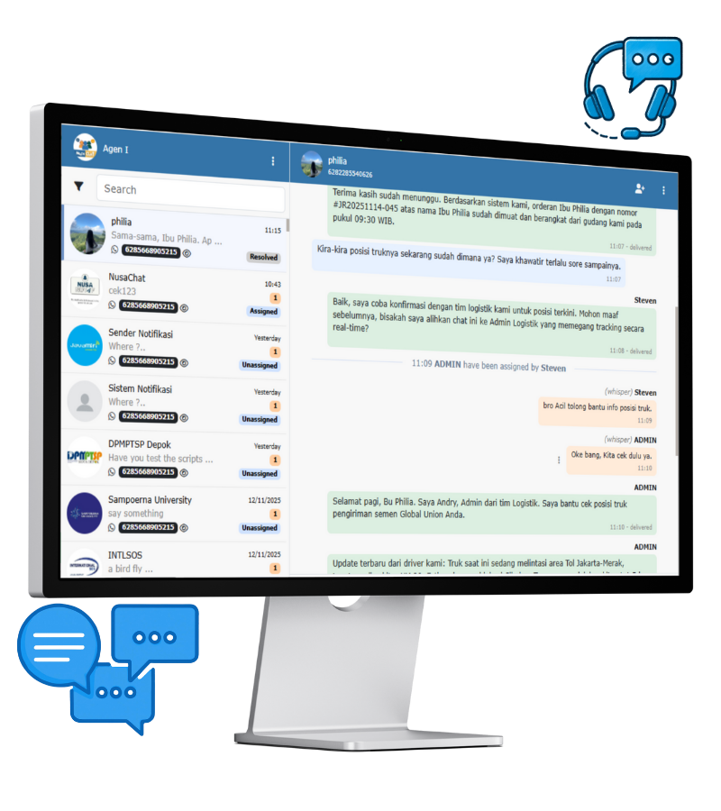 - Transparansi & Riwayat: Semua chat tercatat dan tim dapat memastikan tidak ada percakapan yang terlewat atau hilang.